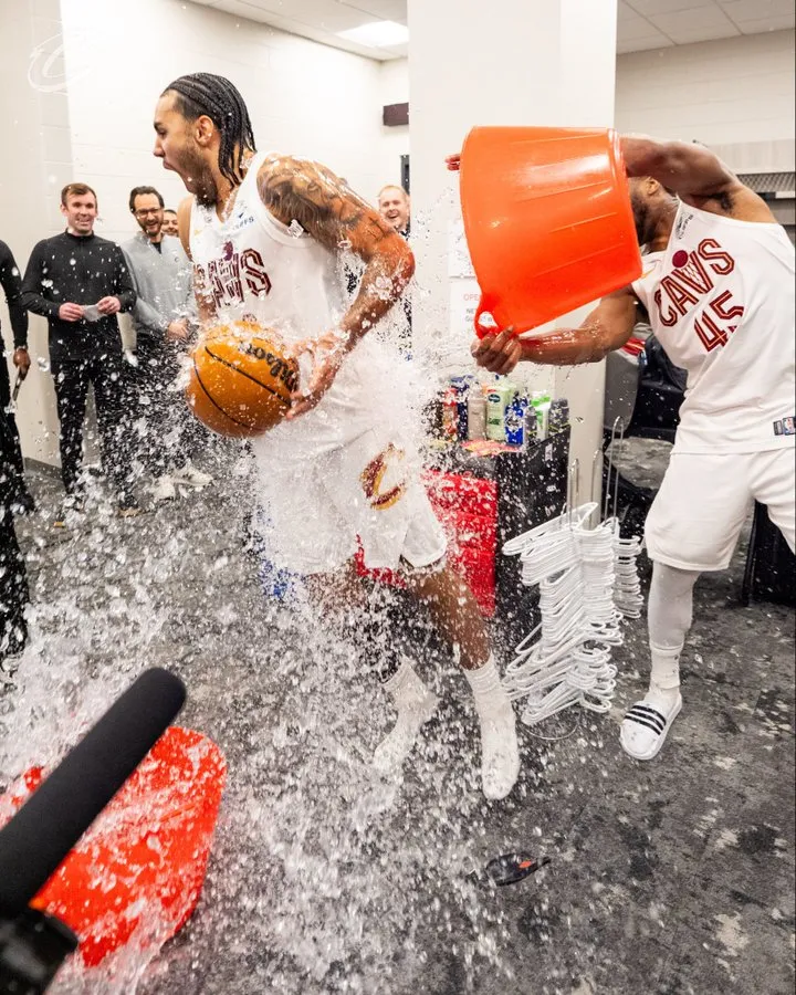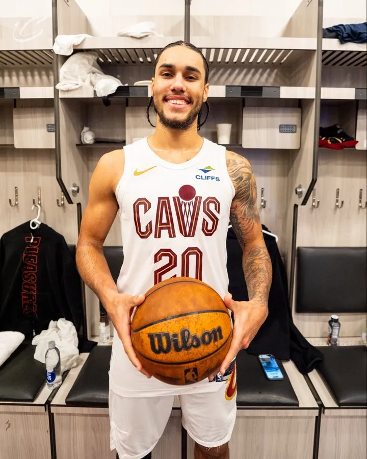 赛后,骑士官方更新X,晒出一组骑士球员杰隆-泰森的照片与球迷分享。