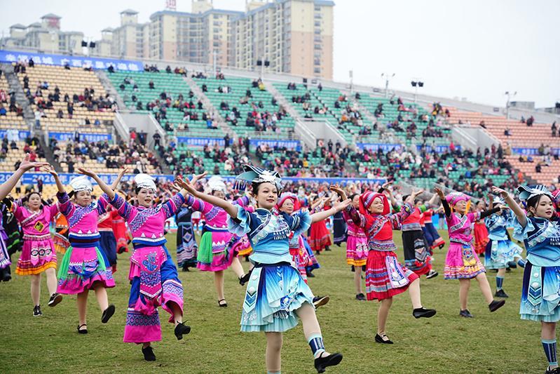 宾阳赛区赛前举行《龙腾狮跃绿茵风》表演。广西体育局供图